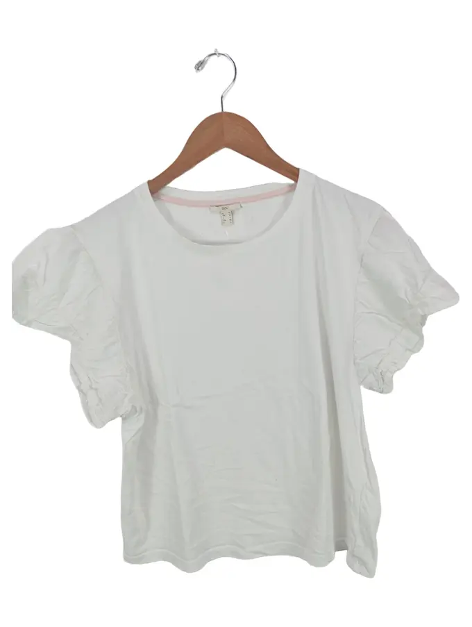 EDC Damen T-Shirt Casual Weiß Gr. 38/M Rüschen Kurzarm Baumwolle