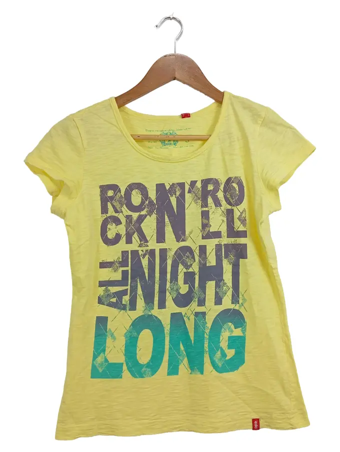 EDC Damen T-Shirt Gelb Schriftzug Gr. 36/S Baumwolle Casual Freizeit