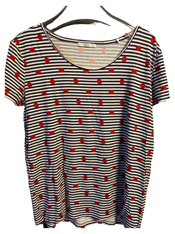 EDC Damen T-Shirt gestreift mit Punkten Gr. 36/S Casual Mehrfarbig