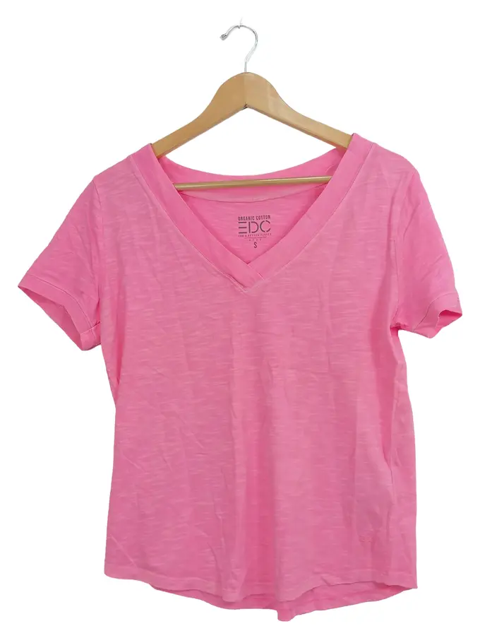 EDC Damen T-Shirt Gr. 36/S Pink Casual Baumwolle V-Ausschnitt