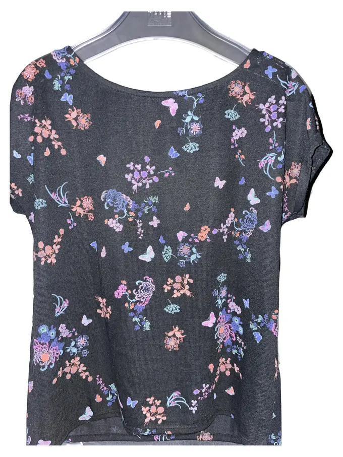 EDC Damen T-Shirt Gr. 38/M Schwarz Blumenmuster Casual