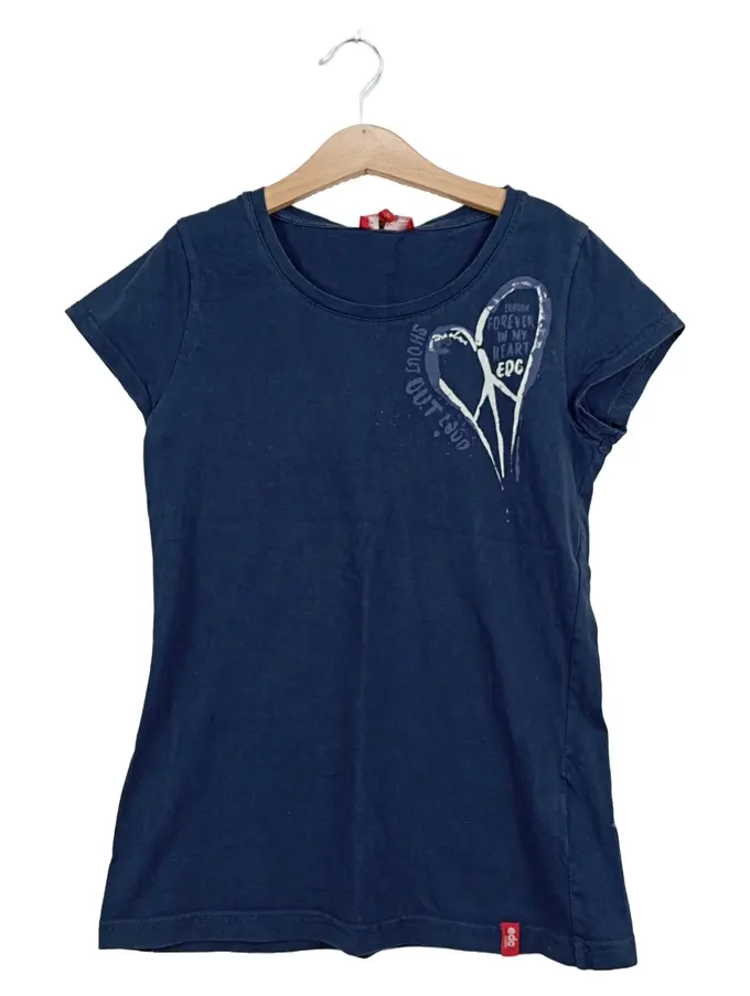 EDC Damen T-Shirt Gr. 40/L Blau Casual Print Herz