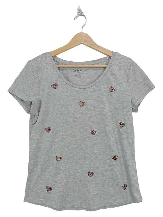 EDC Damen T-Shirt Grau Gr. 38/M Herz-Applikationen
