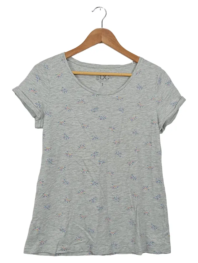 EDC Damen T-Shirt Grau S Casual Grafisches Muster