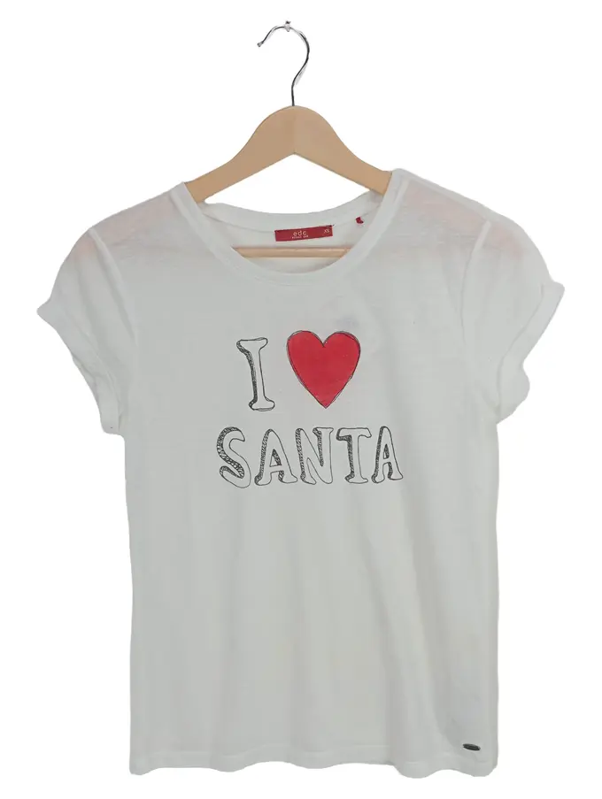 EDC Damen T-Shirt I Love Santa Gr. 34/XS Weiß Weihnachtlich Kurzarm