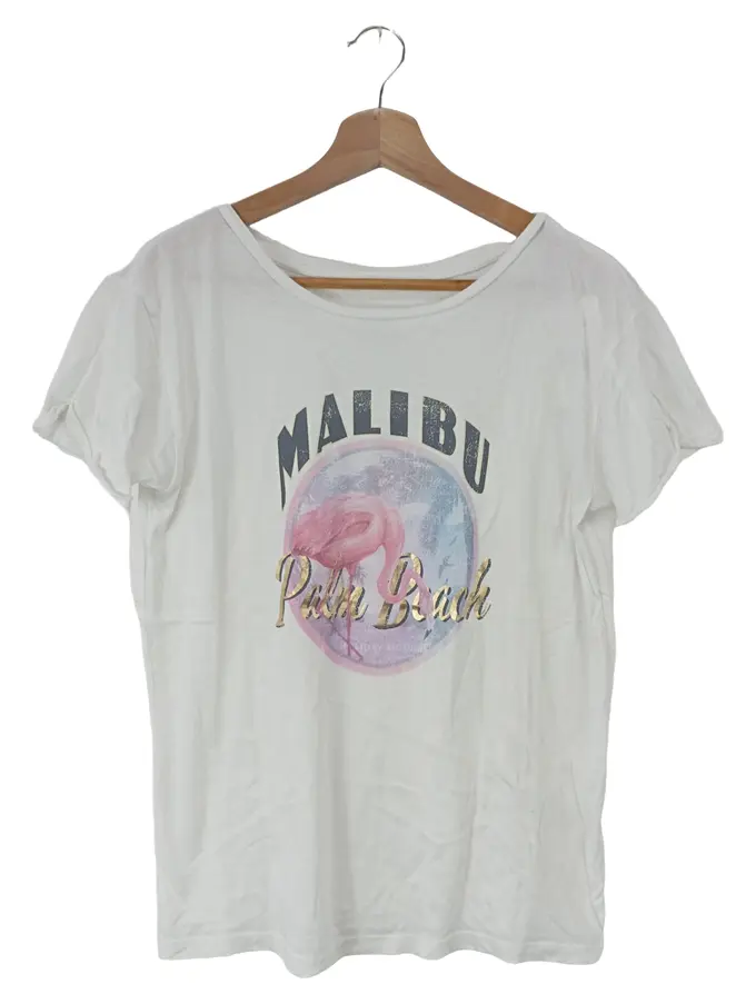 EDC Damen T-Shirt Malibu Palm Beach Gr. 36/S Weiß Casual