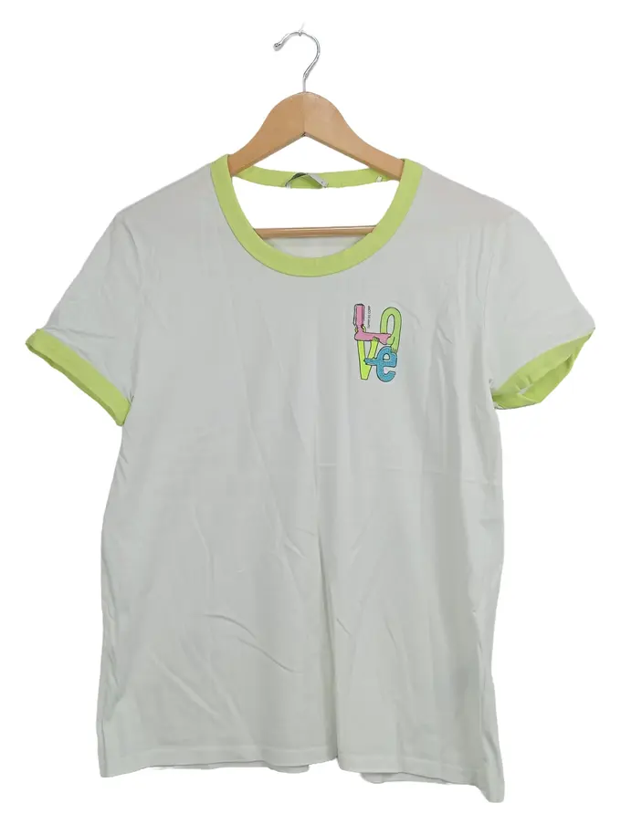 EDC Damen T-Shirt V-Ausschnitt LOVE Aufdruck Weiß Einheitsgröße