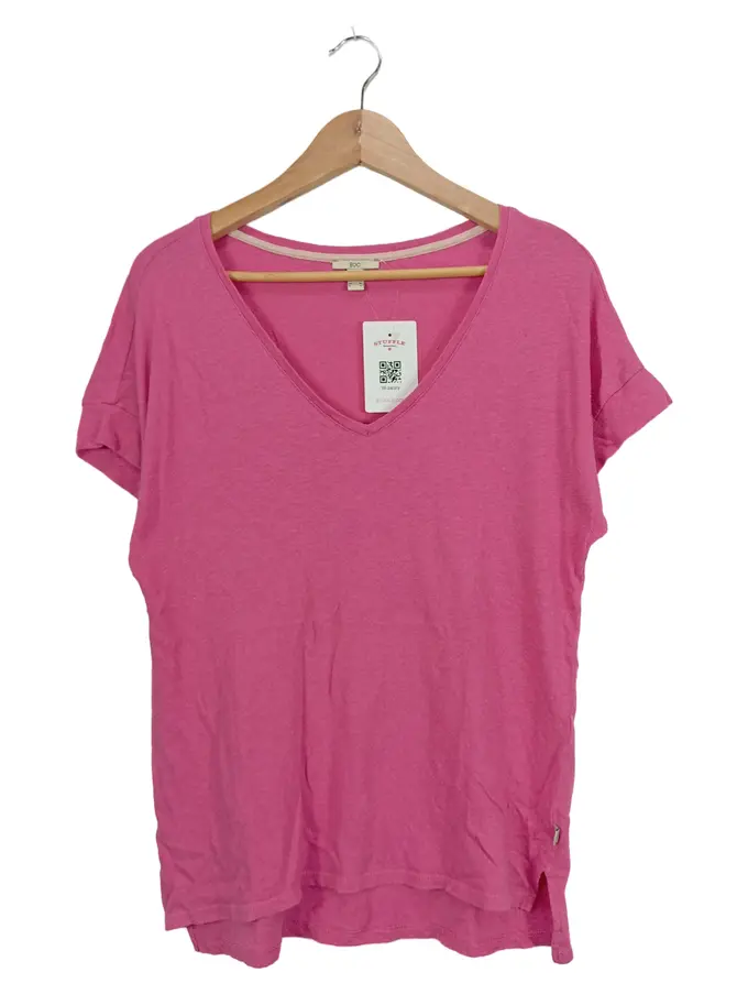 EDC Damen T-Shirt V-Ausschnitt Pink Gr. 38 Casual Kurzarm Shirt