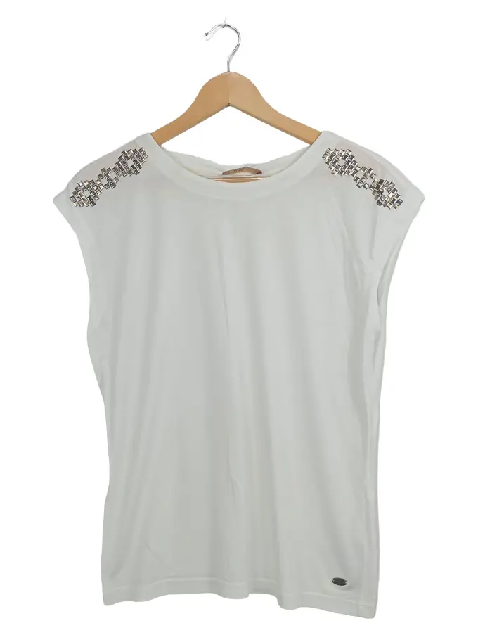EDC Damen T-Shirt Weiß Gr. S Modern Nietenbesatz