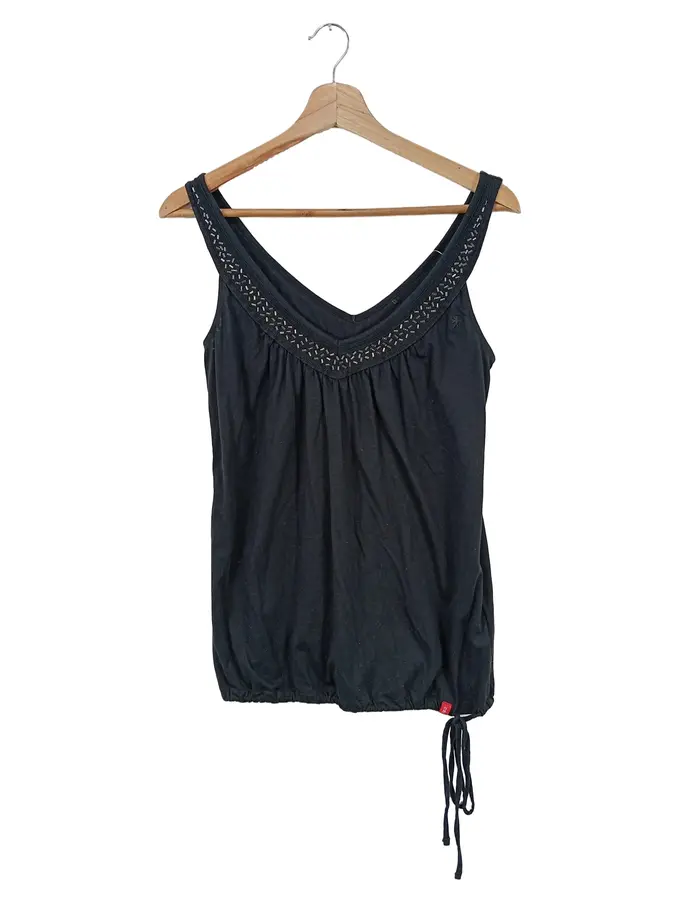 EDC Damen Tank Top Shirt Gr. 38/M Schwarz Casual Baumwolle