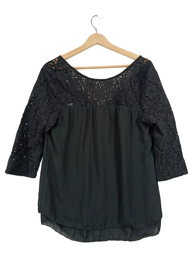 EDC Damen Top 3/4-Arm Spitze Schwarz Gr. L 42 Polyester Alltag Elegant