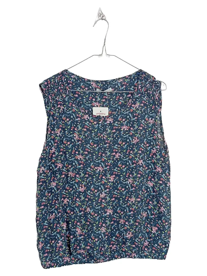 EDC Damen Top Blumenmuster Blau Ärmellos Gr. L 42 Bluse Sommer