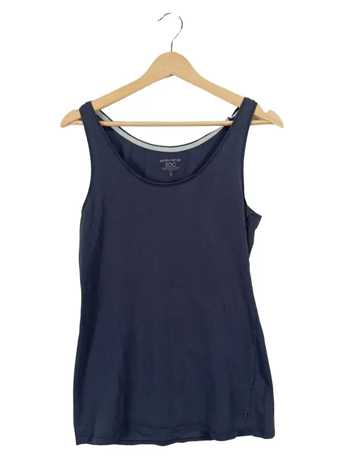 EDC Damen Unterhemd Tanktop Gr. L Basic Blau Baumwolle Elasthan