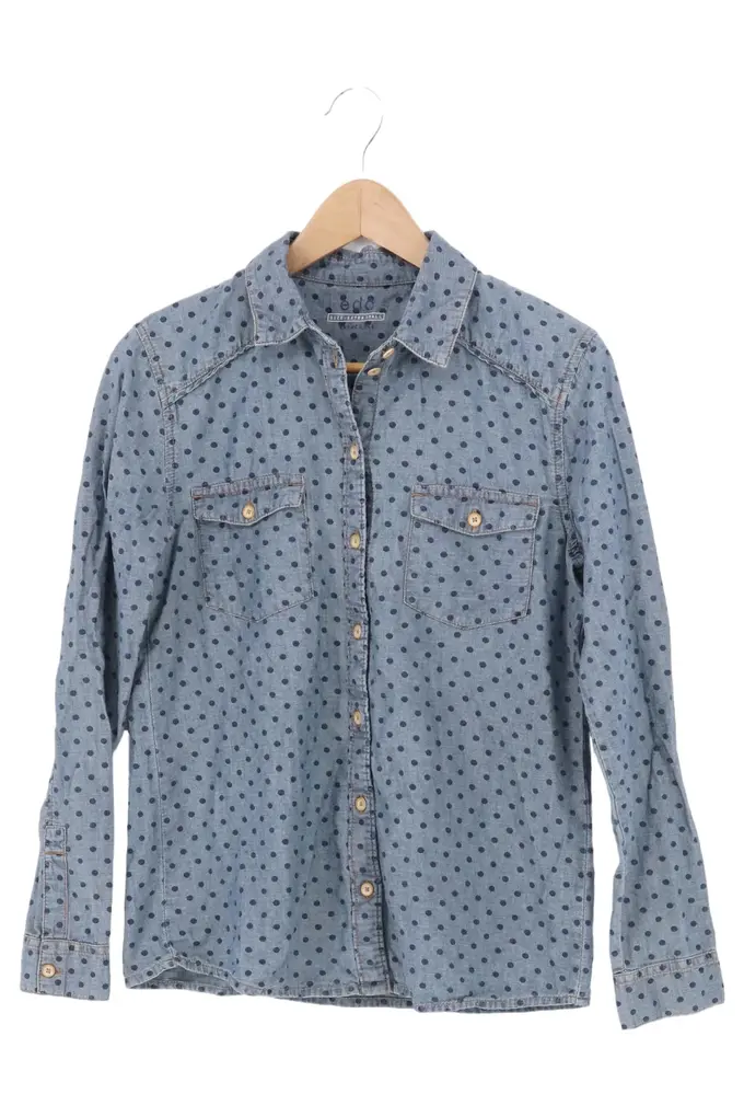 EDC Hemdbluse Damen Blau Punkte Gr. 32/XXS Casual Baumwolle Langarm