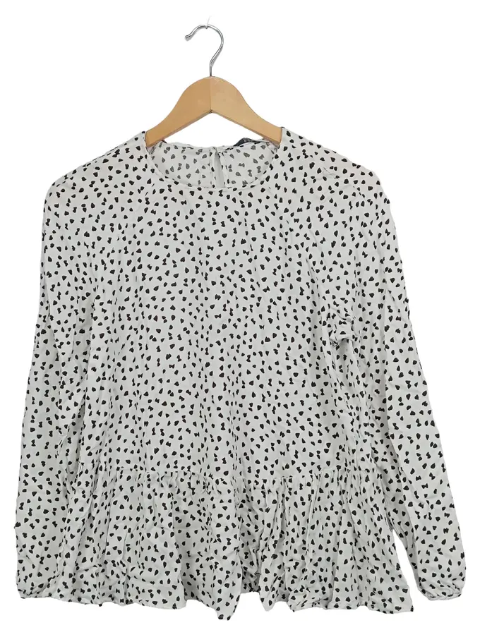 edc Hemdbluse Damen Langarm Tupfenmuster Weiß Gr. 38/M Freizeit