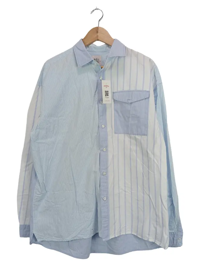 EDC Herren Freizeithemd Langarm Gestreift Blau Gr. 54/XXL Baumwolle