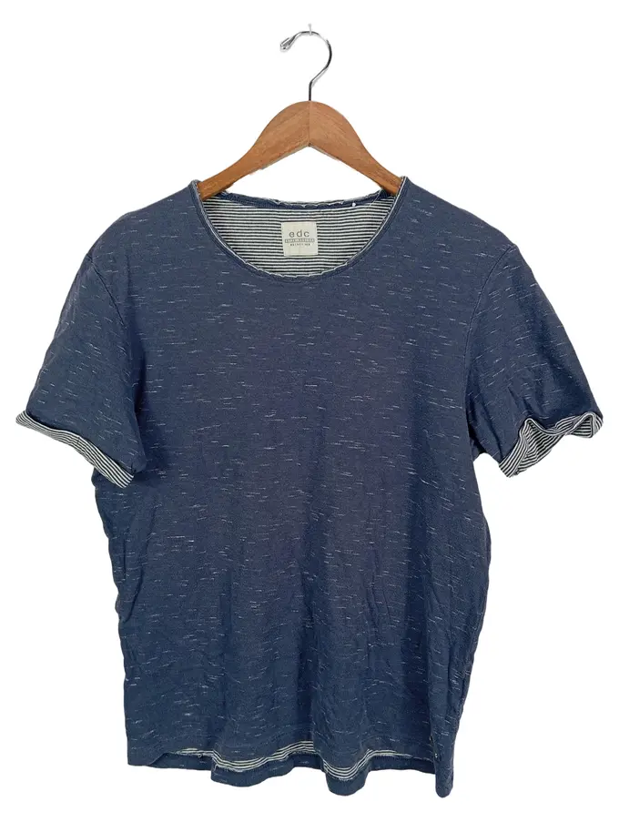 edc Herren T-Shirt Gr. 48/M Blau Meliert Kurzarm Casual Baumwolle
