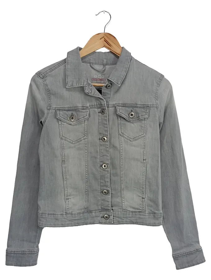 EDC Jeansjacke Damen Casual Basic Langarm Grau Gr. 36/S
