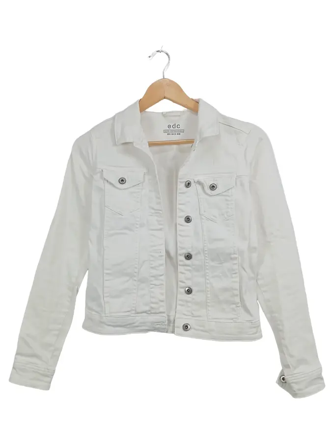 EDC Jeansjacke Damen Gr. 34/XS Weiß Casual Baumwolle