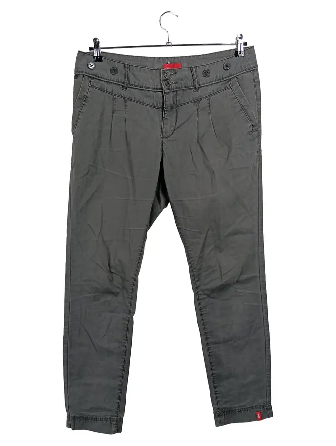 EDC Stoffhose Damen L 40 Oliv Casual Bundfaltenhose Baumwolle