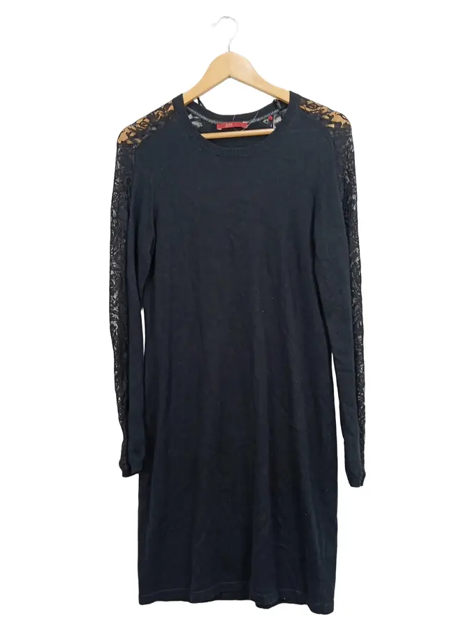 edc Strickkleid Damen Gr. 40 L Schwarz Spitze Freizeitkleid Midikleid