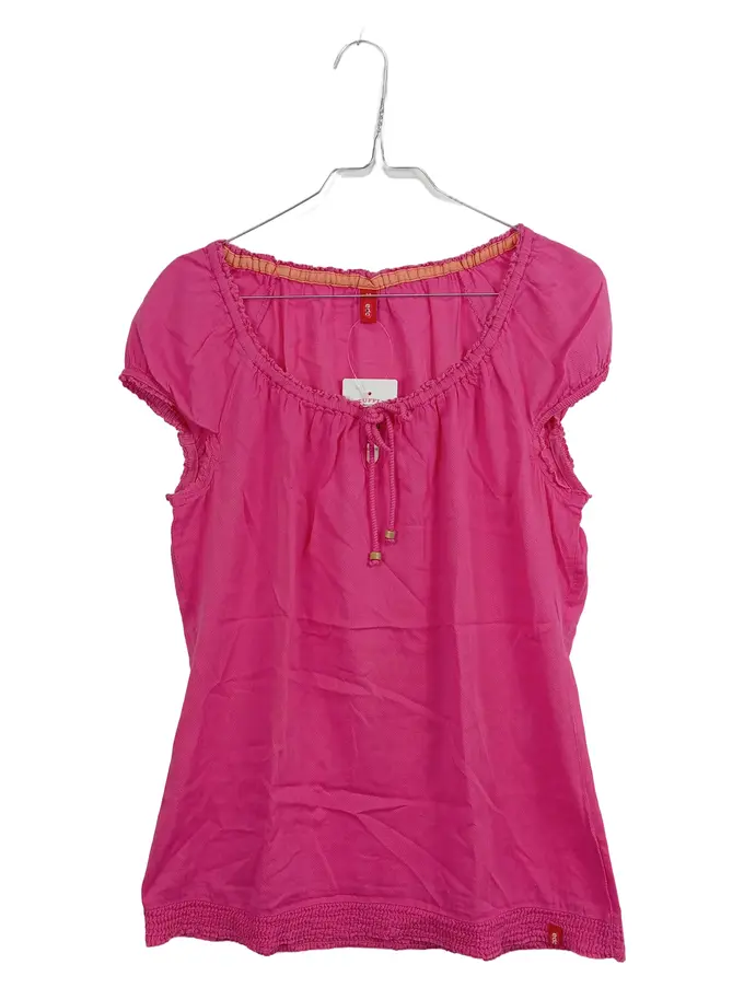 edc T-Shirt Damen Kurzarm Raffungen Pink Gr. 38 M Baumwolle Casual