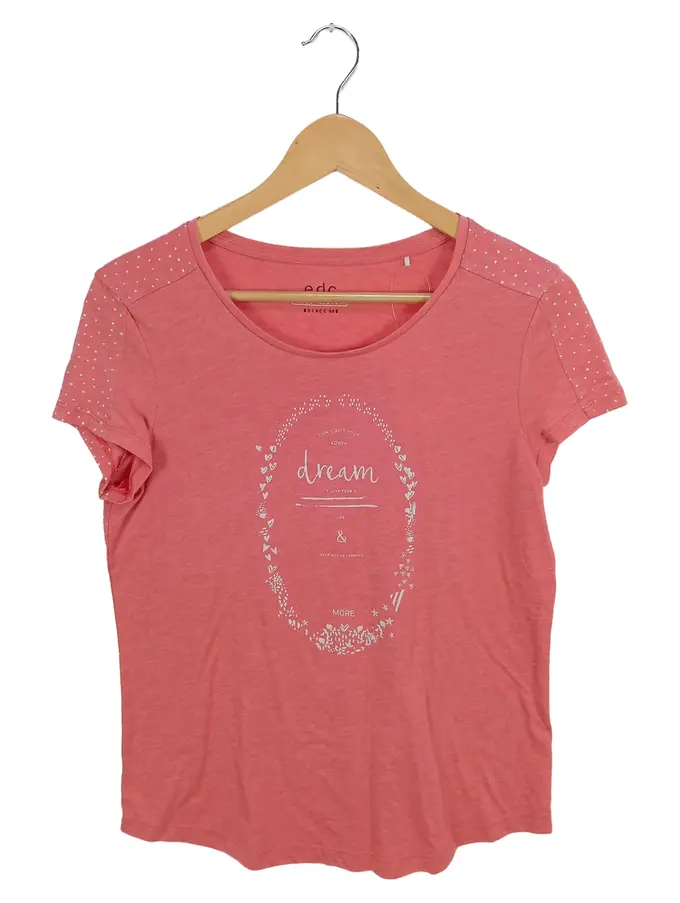 EDC T-Shirt Damen Pink Schriftzug Applikationen Gr. 38/M Kurzarm Freizeit