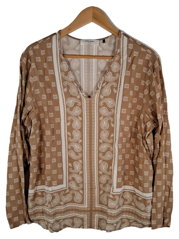 Edition Bluse Damen Gr. 40 Paisley Beige V-Ausschnitt