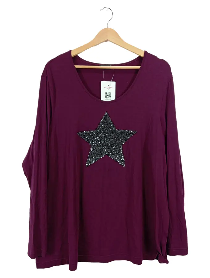 Edition Damen Langarmshirt Gr. 46 Lila Stern Pailletten