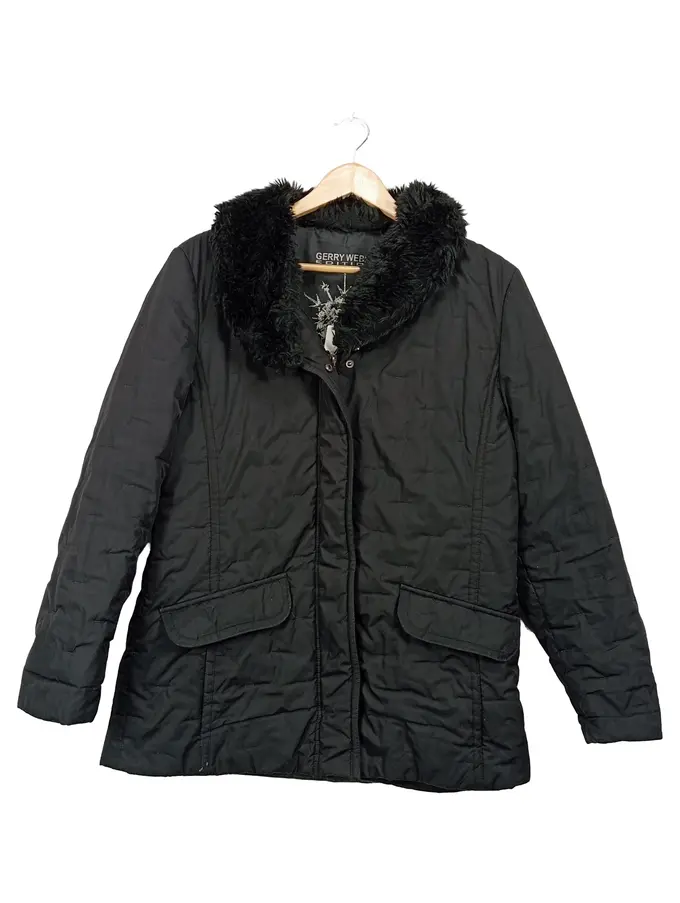 Edition Damen Steppjacke Gr. 38 Schwarz Fellkragen Winterjacke