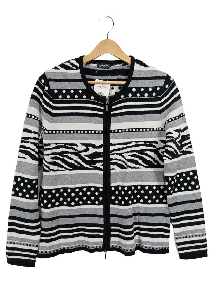 Edition Damen Strickjacke Gr. 38 Schwarz Grau Weiß Reißverschluss