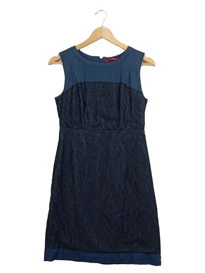 Etuikleid Damen Gr. 36 Blau Spitze Elegant Festlich Midikleid