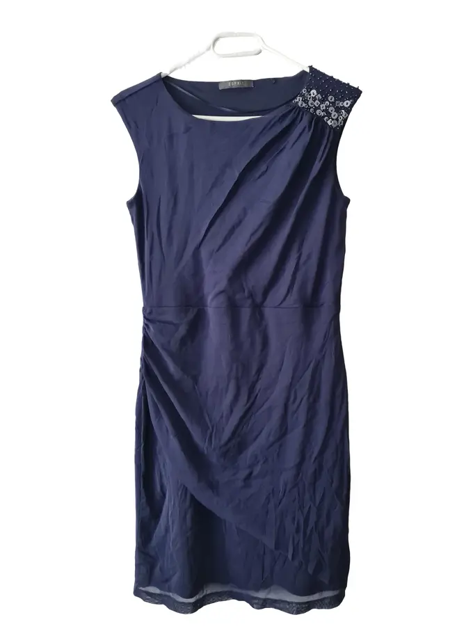 Etuikleid Damen Gr. 38/M Blau Elegant Pailletten Festlich