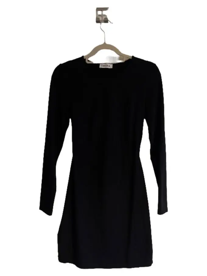 Etuikleid Damen Gr. 38 Schwarz Casual Langarm Kleid