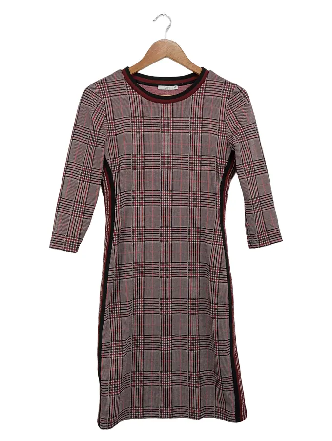 Etuikleid Damen Gr. XXS Kariert Grau Rot Jersey