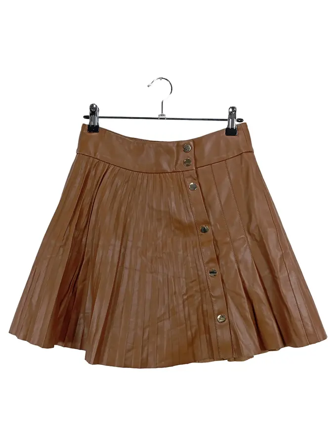 Faltenrock Kunstleder Damen Gr. S Braun Plissee Knopfleiste