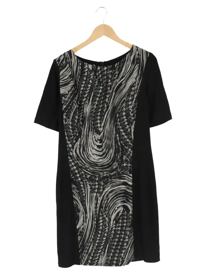 FEMME Damen Strickkleid Gr. 40/L Schwarz Grafisch Elegant Midikleid