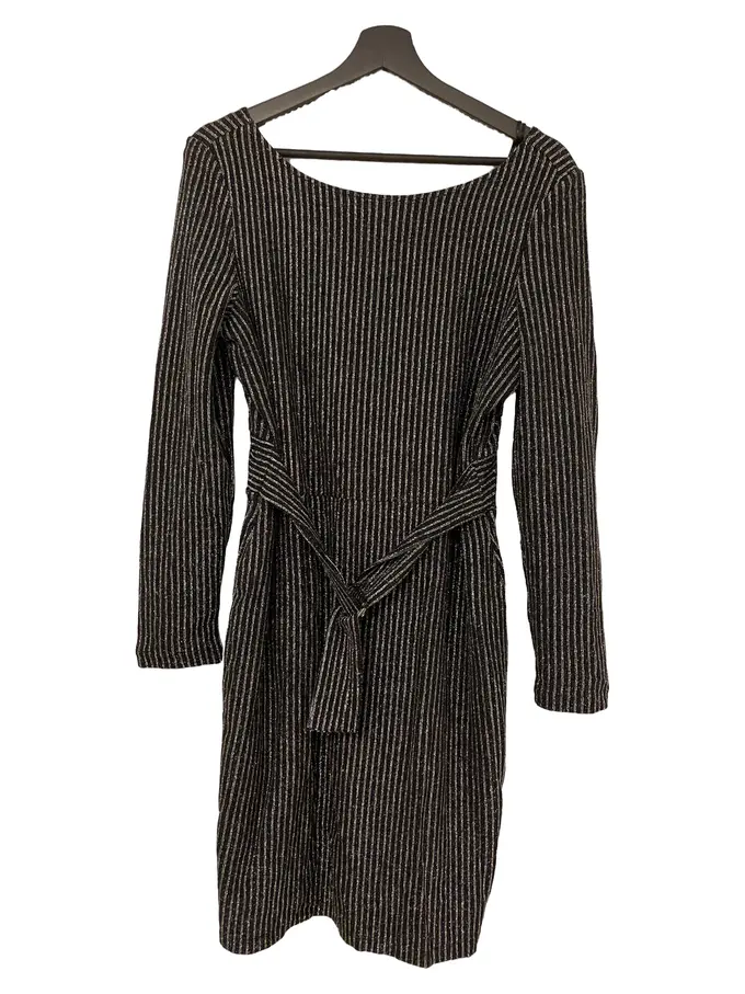 festliches Kleid gestreift Langarm Metallic-Look Schwarz XL