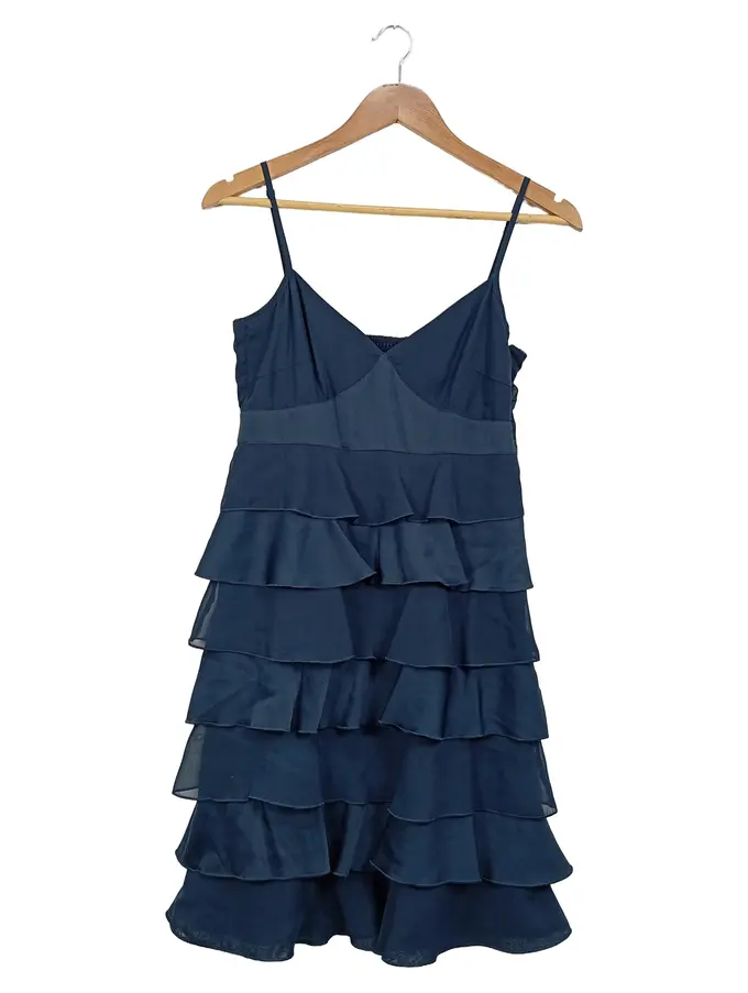 festliches Kleid Gr. 32/XXS Blau Rüschen Midikleid Damen