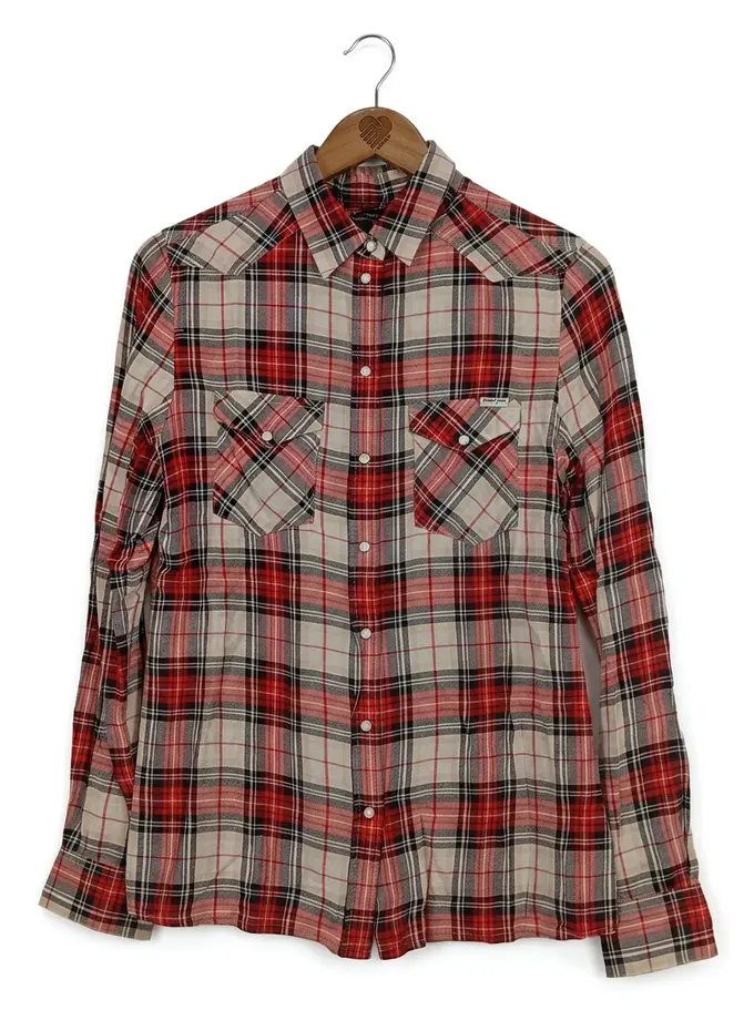 Flanellhemd Herren Gr. S/36 Kariert Rot Grau Langarm Casual