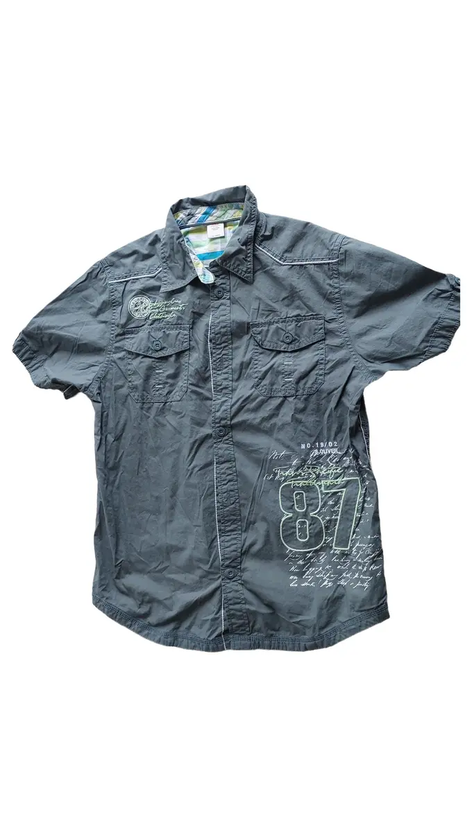Freizeithemd Kinder Jungen Hemd Grau Gr. 152 Baumwolle Kurzarm Casual