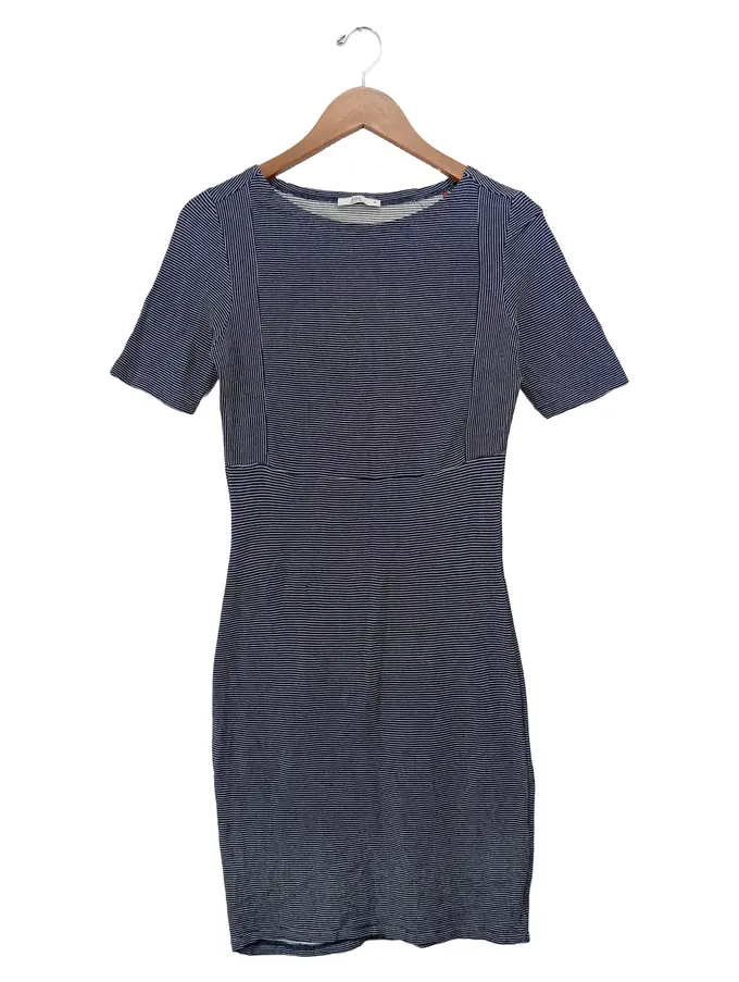 Freizeitkleid Damen Blau Gestreift Gr. 38/M Baumwolle Midikleid