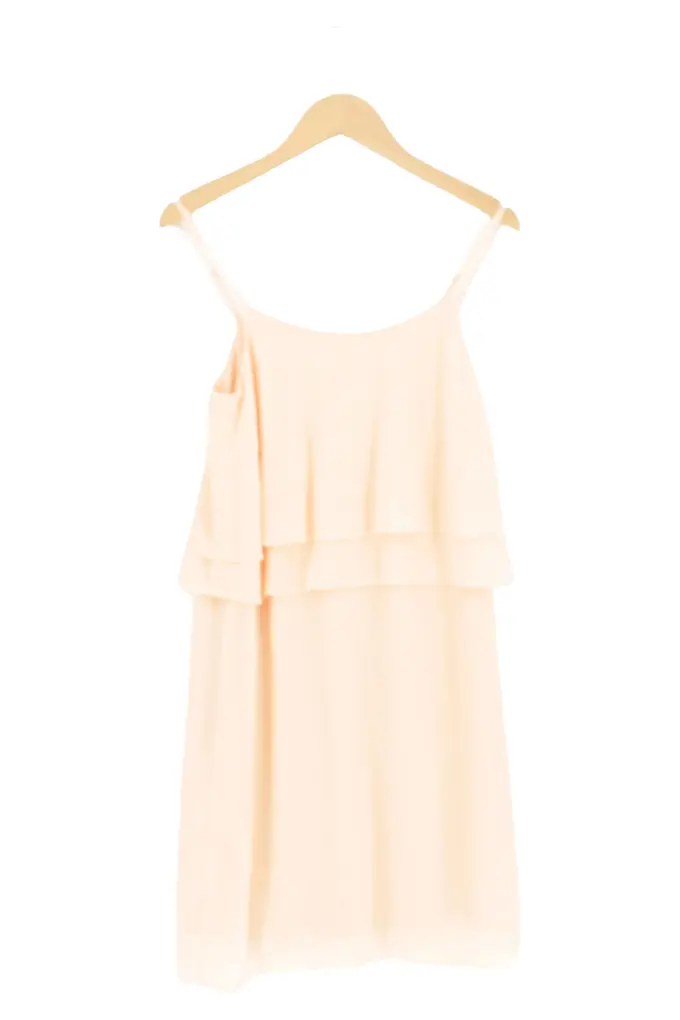 Freizeitkleid Damen Gr. 36/S Rosa Rüschen Trägerkleid Midi Elegant