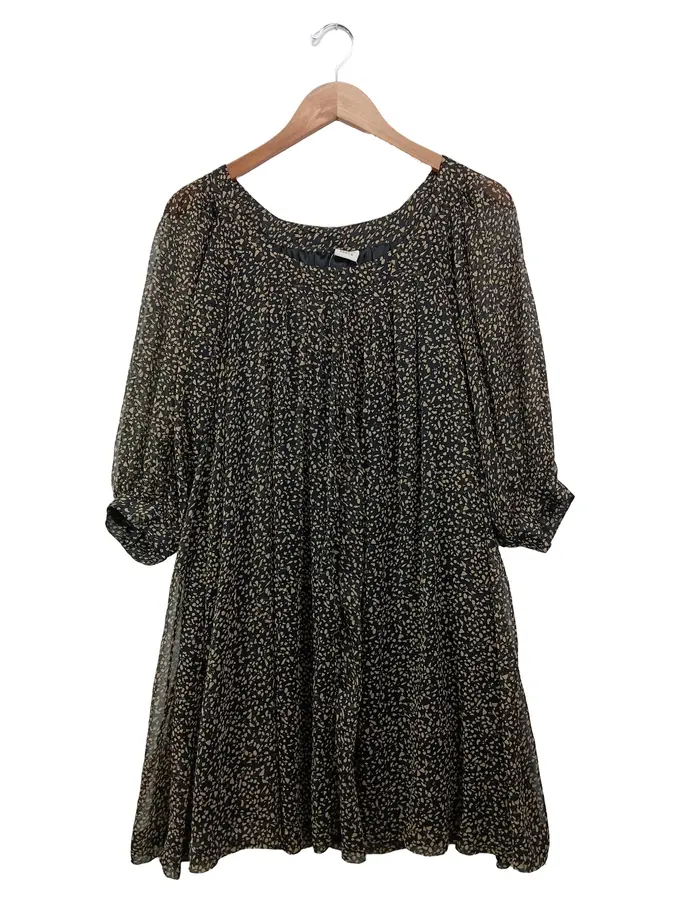 Freizeitkleid Damen Gr. 36/S Schwarz Abstrakt Vintage Elegant Midikleid
