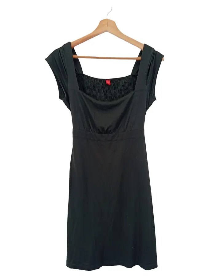 Freizeitkleid Damen Gr. 36/S Schwarz Elegant Midikleid Raffungen