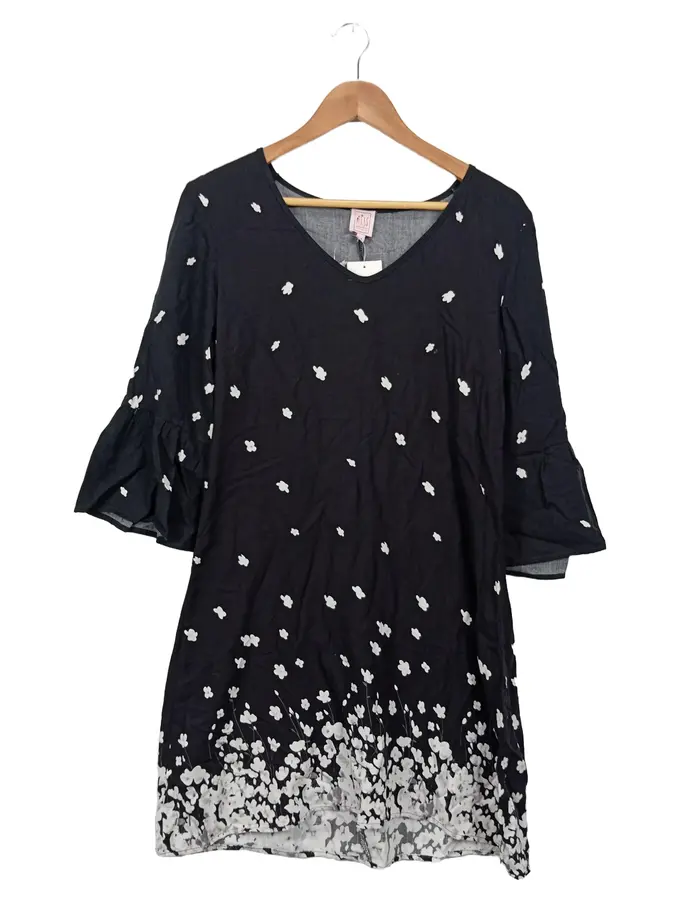 Freizeitkleid Damen Gr. 38 Schwarz Blumenmuster Feminin