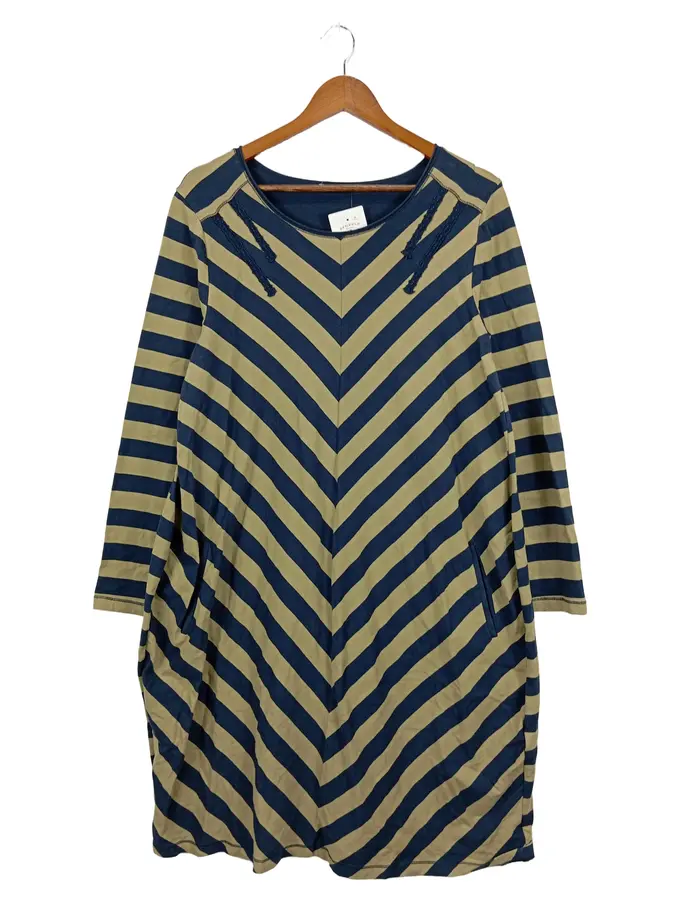 Freizeitkleid Damen Gr. 40/L Gestreift Blau Beige Casual Baumwolle