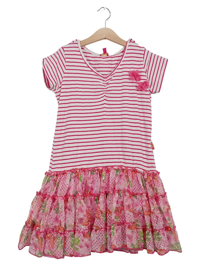 Freizeitkleid Gr. 146 Pink Gestreift Blumen Rüschen Sommerkleid