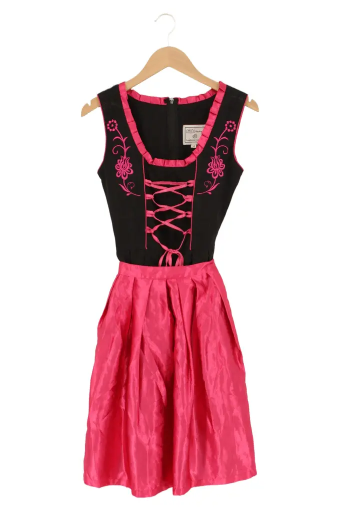 GAUDI TRACHTEN Dirndl Trachtenkleid Damen 34/XS Schwarz Pink Vintage Stickerei
