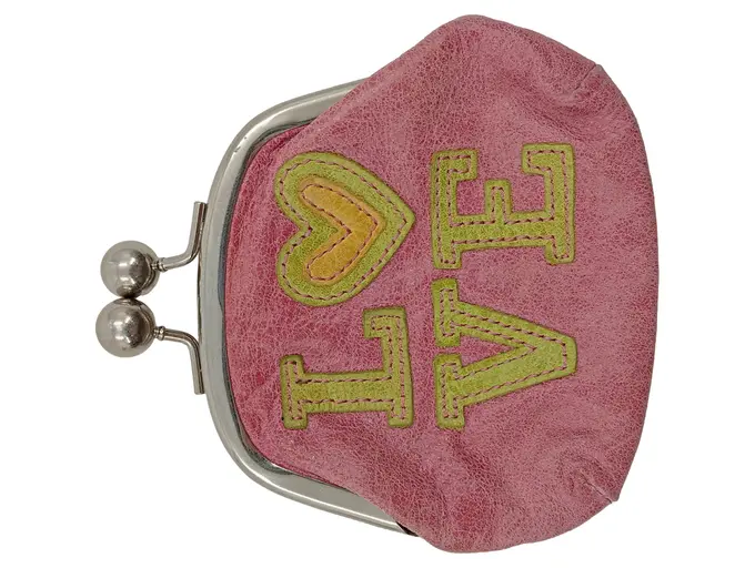 Geldbörse LOVE Münzbörse Rosa Leder Vintage Retro Knipsbörse